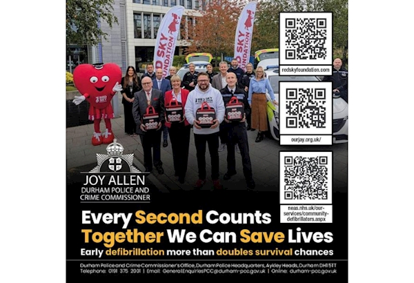 That’s why I am delighted to report that every single response and neighbourhood policing vehicle across Durham Constabulary is now equipped with a lifesaving defibrillator — thanks to the Red Sky Foundation and OurJay Foundation, whose tireless fundraising efforts, compassion and determination have made this significant milestone possible.